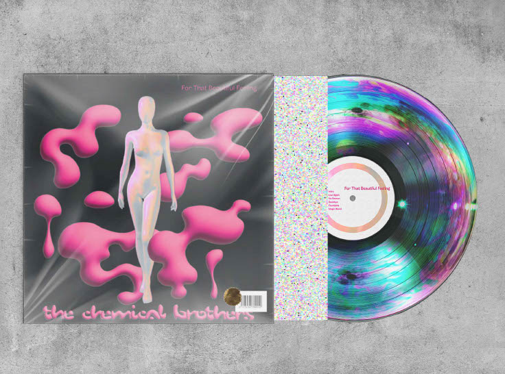 The Chemical Brothers have often used imagery of robots revolting against their programming and freeing themselves through dance. That is why, when redesigning the “For That Beautiful Feeling” vinyl,I wanted to continue to explore that concept by imagining what their music releases would look like, say, 300 years from now. Through androgynous forms created using Blender, my vinyl series envisions how one might experience emotions and physical touch in an artificially intelligent future.
