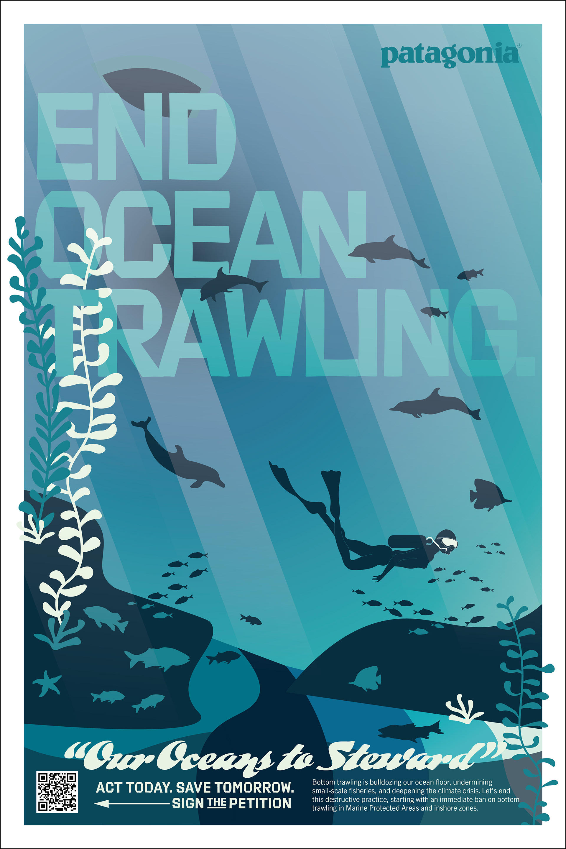 Patagonia calls for an end to bottom trawling! Join the call to action and protect our oceans by signing the petition. My poster won a design contest for Patagonia, created to further raise awareness of this environmental campaign, which globally has already garnered almost 200,000 signatures.